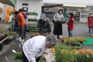 ●当日は、会員が丹精込めて育てた花苗や新鮮野菜、手芸品や木工製品などをとり揃え、多くの来場者でにぎわいました。