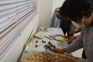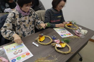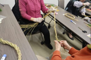 ●当日は16名の市民が参加し、木工部会員講師の指導のもとしめ縄づくりに挑戦。作品完成後には、参加者同士の交流が自然に生まれ、和やかな時間となりました。